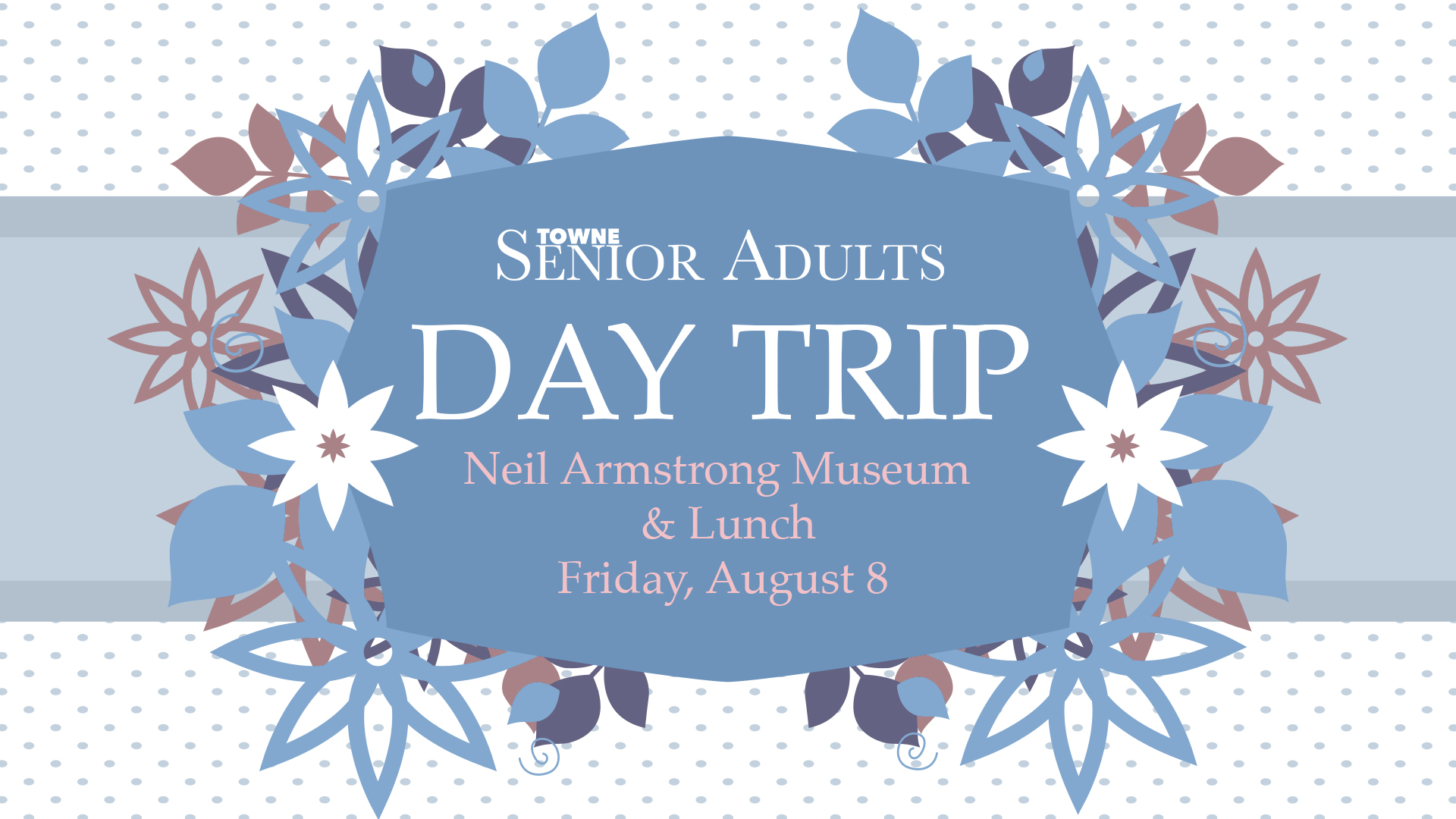 On August 8, there will be a day trip to the Neil Armstrong Museum. Bus will leave at 9:30am and there will be lunch to follow.